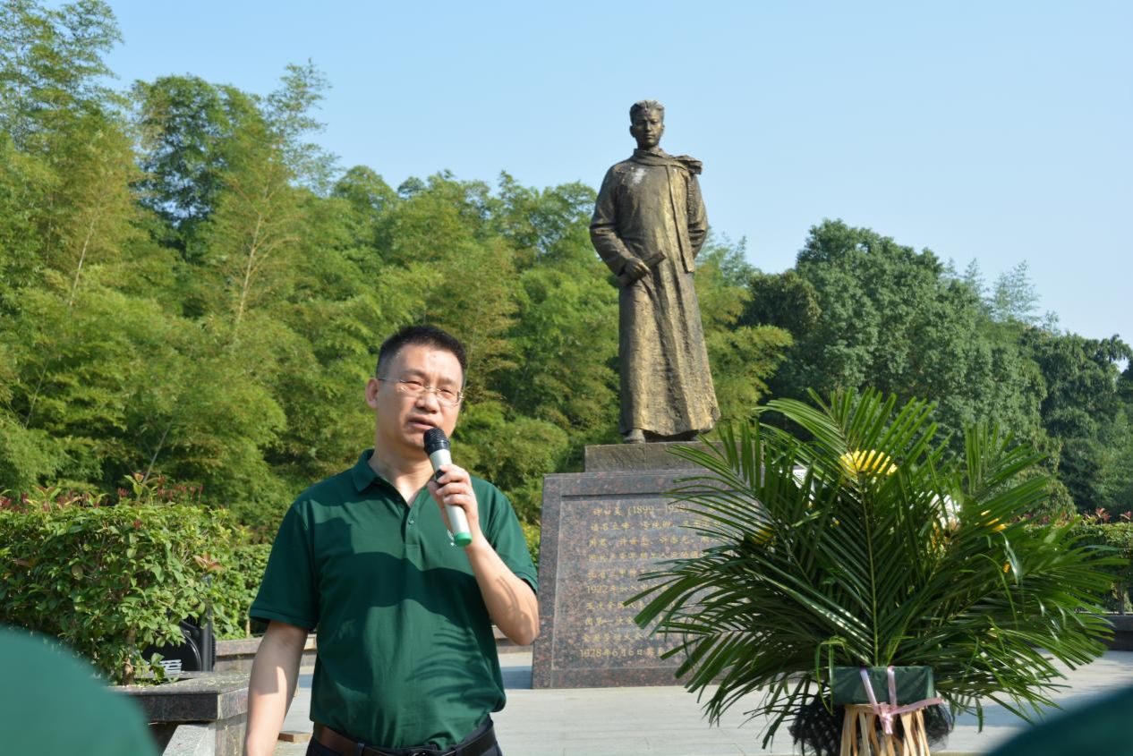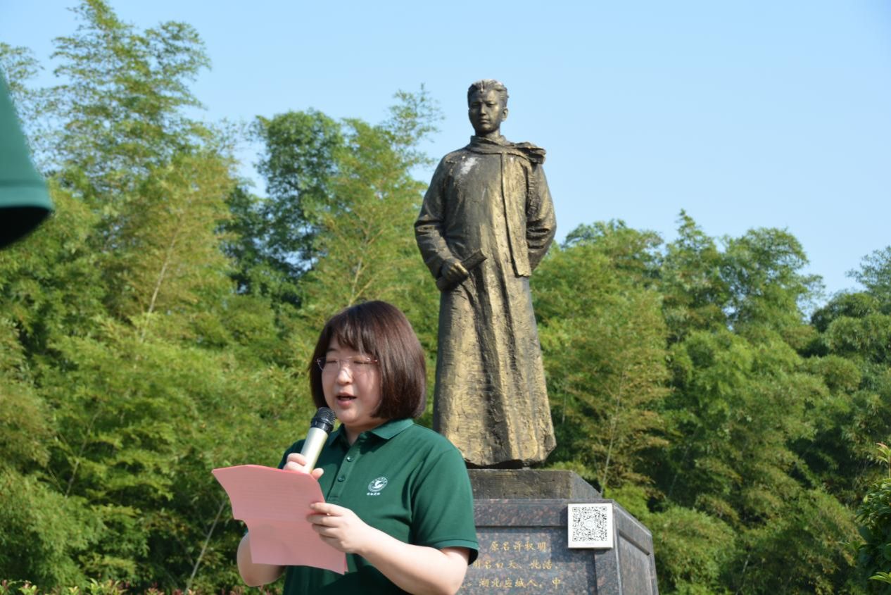 在黄家湖校区廉园内的许白昊铜像前举行第三期“许白昊班”开班仪式。仪式特邀许白昊班指导员、董必武嫡孙董绍壬和华中师范大学教授、博士生导师严昌洪作为嘉宾出席,法经学院党委副书记刘英主持仪式。