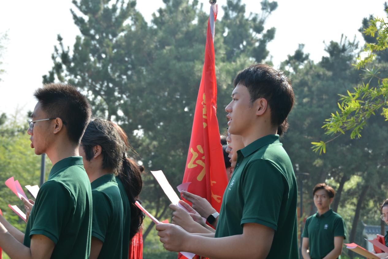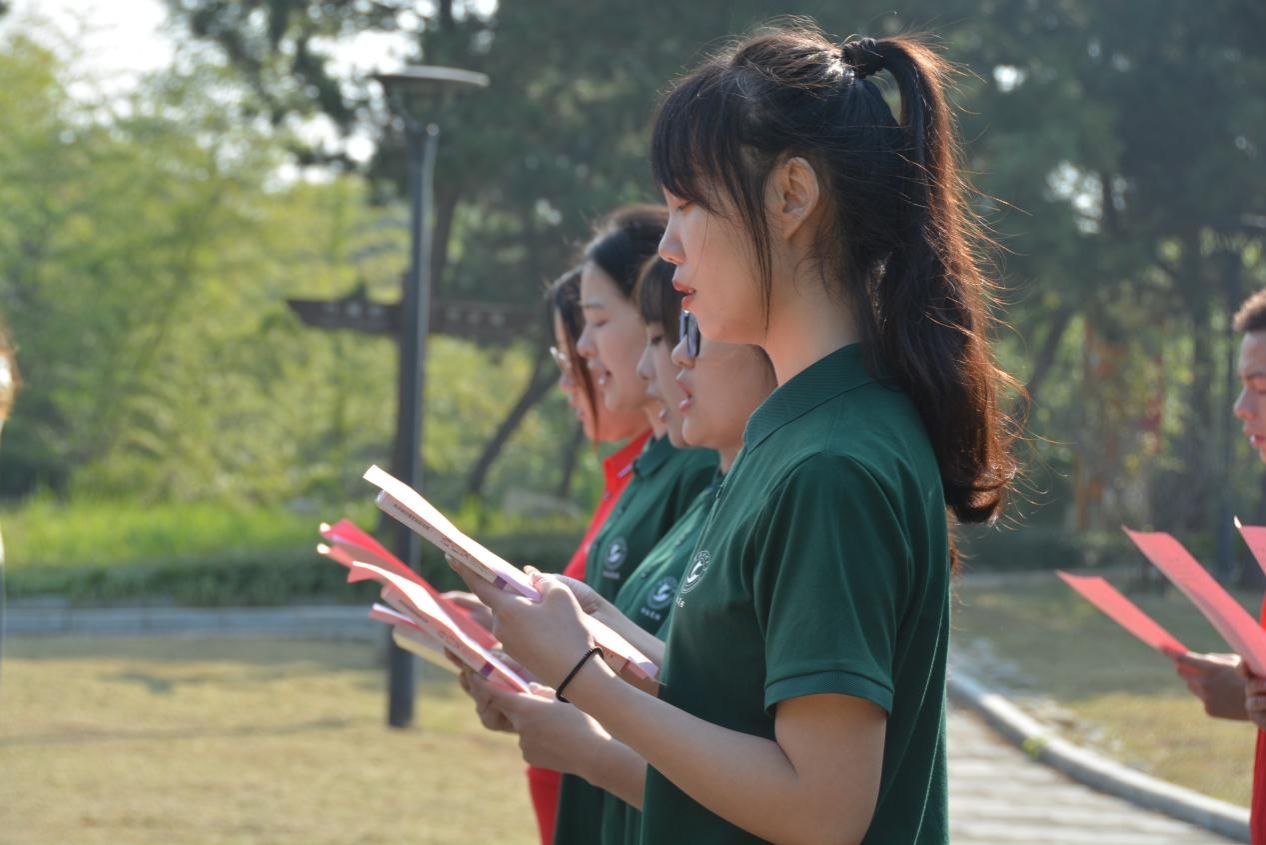 “我们的泪预备洗净大千世界,我们的血预备洒透昏愦众生……”全体起身深情朗诵许白昊的诗歌《鹃血》。仪式最后,在场全体师生前往成人导航