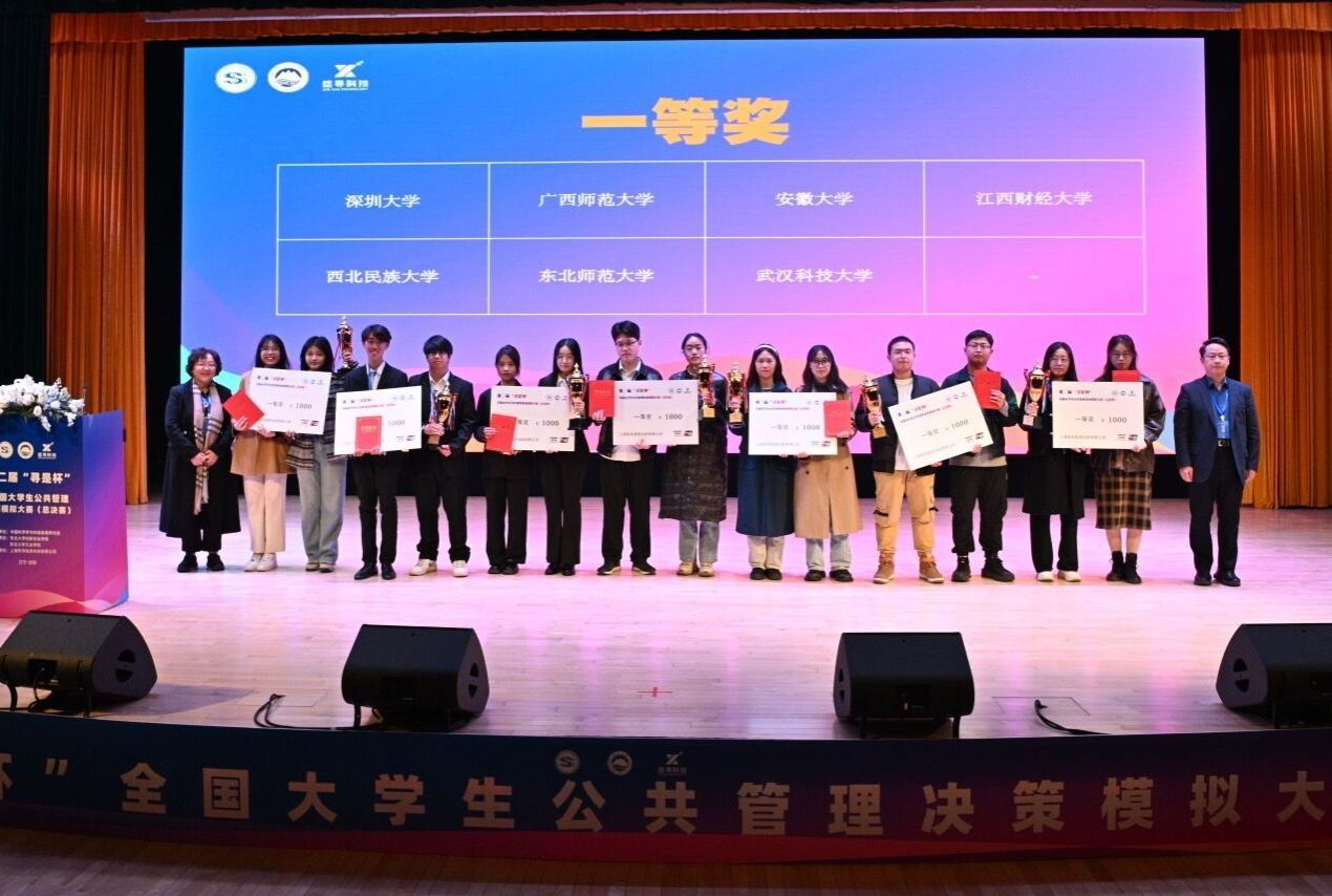行管2102班麦权煜、行管2201班庹桂英、公管2103班余重骁于东北大学参加的第二届“寻是杯”全国大学生公共管理决策模拟大赛(总决赛)荣获一等奖,由成人导航