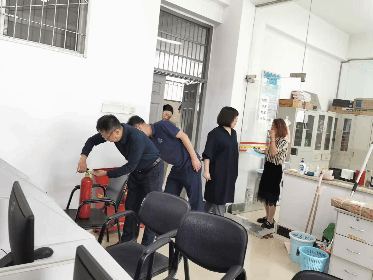 学院领导一行先后对各楼层楼道、实验室、图书馆、模拟法庭等重点场所进行了实地查看,检查了消防设施设备、安全责任人、消防安全管理等实际情况,针对存在的消防安全隐患和问题,提出了整改意见和要求。其中学院领导一行重点检查了消防设备的有效期限,院长袁年兴、行政副院长赵厚成还现场亲自示范如何正确的使用灭火器。