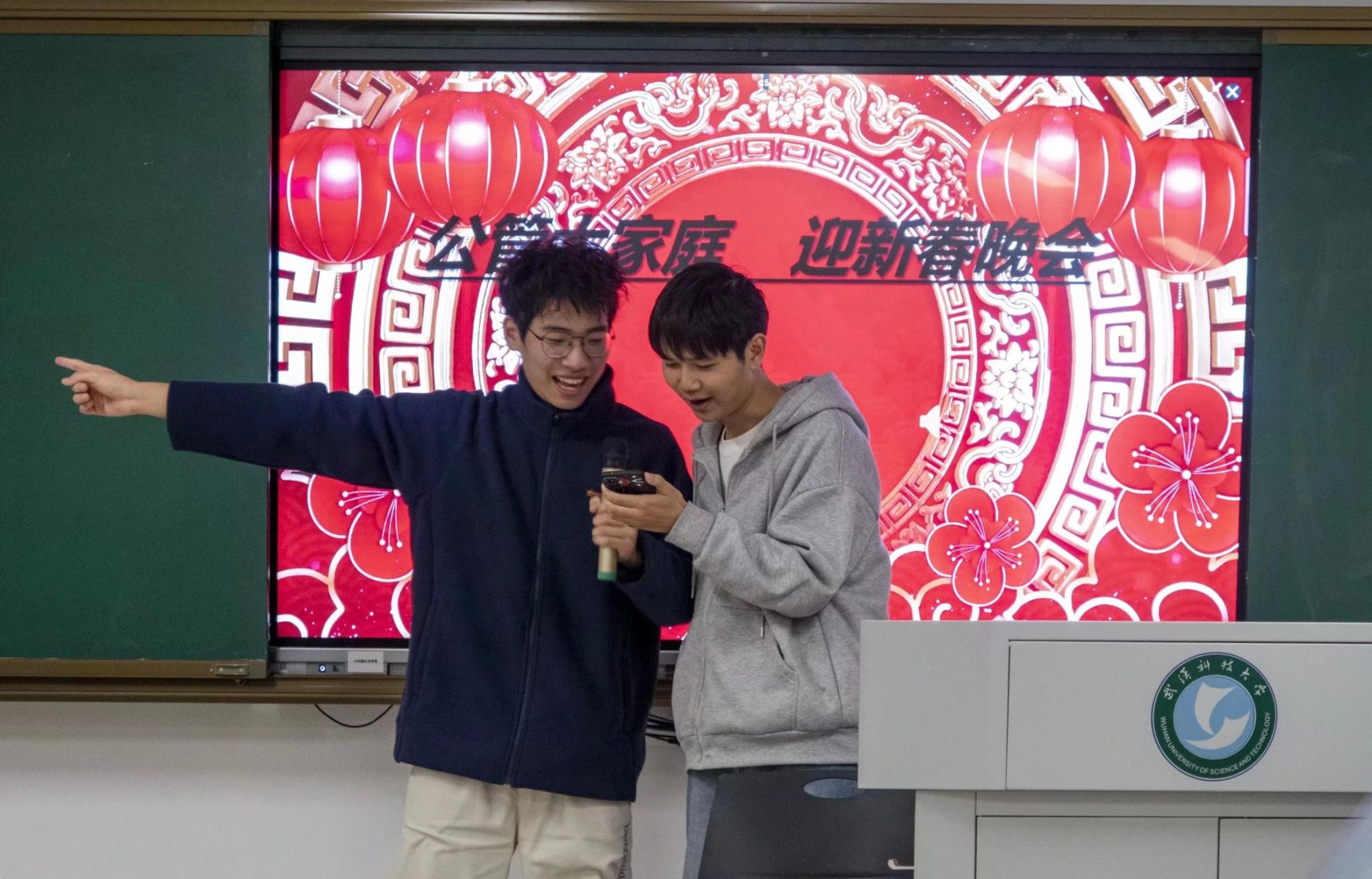 另外,晚会上还为师生们带来了许多惊喜,通过“武科大里有什么”“你画我猜”“听歌识曲”等互动游戏、抽奖环节等,让现场气氛热烈非凡。师生们积极参与,欢笑声此起彼伏,共同度过了一个难忘的夜晚。最后,全体同学为12月23日即将考研的2020级学长学姐们录制了祝福视频,表达了对学长学姐们的美好祝愿。