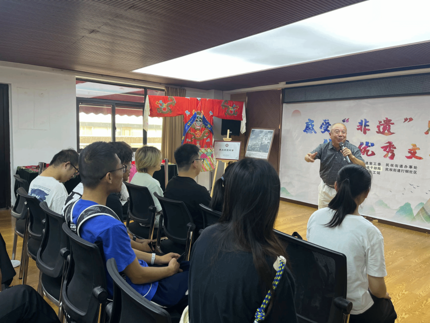 团员们还特别有幸参加了由武汉话文化传承人方新建老师主讲的方言课程。方老师用地道的武汉话为大家讲解了武汉话的历史渊源以及打铜社区的历史发展。通过传承人的讲解,团员们不仅学习了地道的武汉话,更通过语言的桥梁直观地了解了社区的历史和文化传承,对社区的特色和魅力有了更深入地认识。