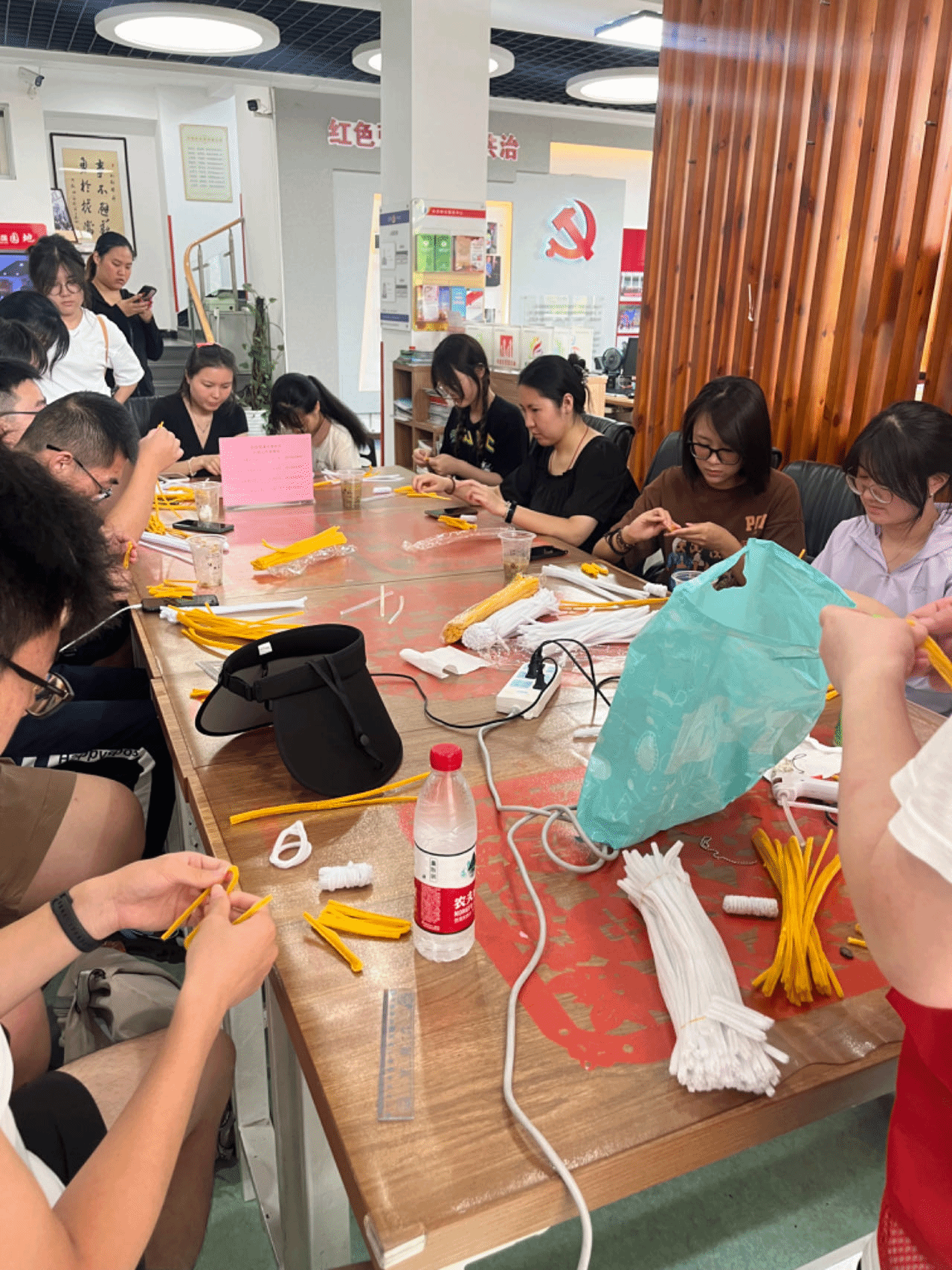 党委副书记桂丹丹向团员们介绍了社区的打铜英雄榜和社区的红色文化历史墙,并带领团员们参观了桂香编织社。社区为大家准备了简单的扭扭棒课程,让大家亲自动手,体验社区服务的乐趣。