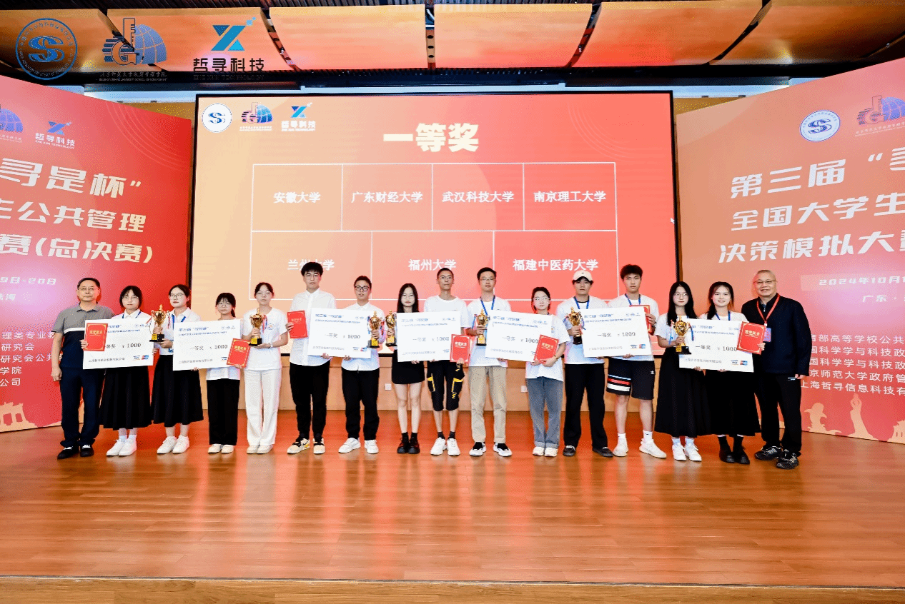 据悉,“寻是杯”全国大学生公共管理决策模拟大赛是目前国内公共管理学科领域最具影响力的本科生竞赛活动之一。赛事设计贴近实际、突出实践、注重创新,对于提高公共管理人才培养质量,培育服务国家治理现代化建设的高端公共管理人才具有重要的现实意义,也为推进公共管理专业人才培养模式改革贡献了有益探索。