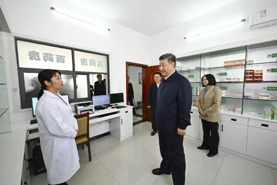 优秀校友、咸宁市嘉鱼县潘家湾镇党委副书记、四邑村驻村第一书记骆晓丽向总书记汇报潘家湾镇基层治理、养老服务、便民服务等方面的工作举措和成效。