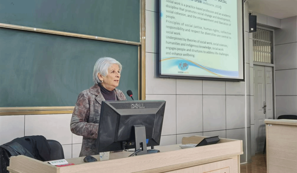 接着,Annamaria教授深入探讨了全球社会工作教育标准的形成过程。她强调,这些标准并非固定的最低门槛,而是考虑到世界各国在社会工作发展中遇到的特定挑战,因此需要提供多样化的支持来满足不同地区的具体需求。在讲座的后半段,Campanini教授展示了全球标准的详细内容,涵盖了学校、服务对象和职业三大关键领域。她期待通过推广全球社会工作教育标准,能够营造一个开放且多元的教育氛围,从而为未来的社会工作者创造高质量的学习机遇。