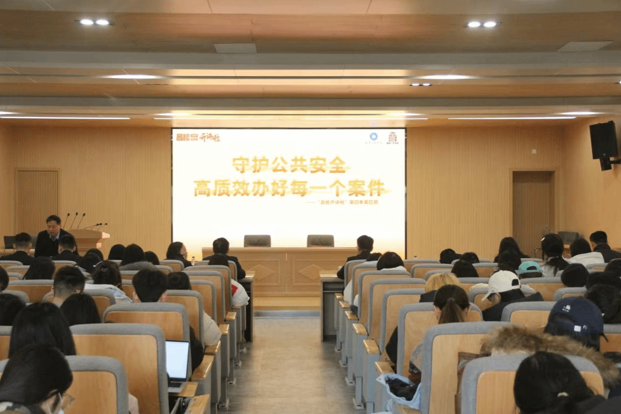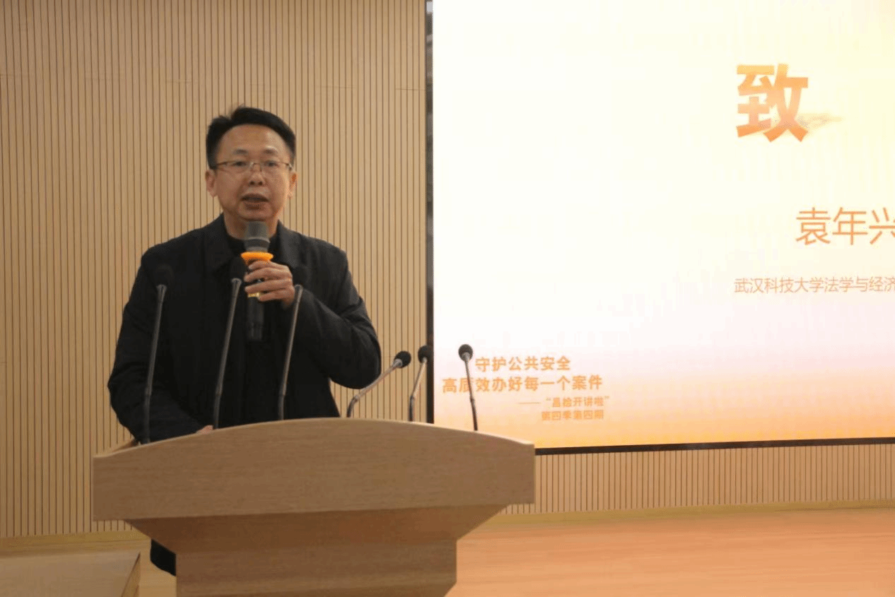 院长袁年兴致辞讲话,代表学院向到场的嘉宾、师生以及武昌区检察院的同志们表示诚挚的欢迎。他指出,公共安全是社会和谐稳定的重要基石,而法律则是维护这一基石的坚强后盾。他寄语学生加深对法律知识的理解与运用,不断提升法律实践能力,为将来投身于法治建设打下坚实的基础。