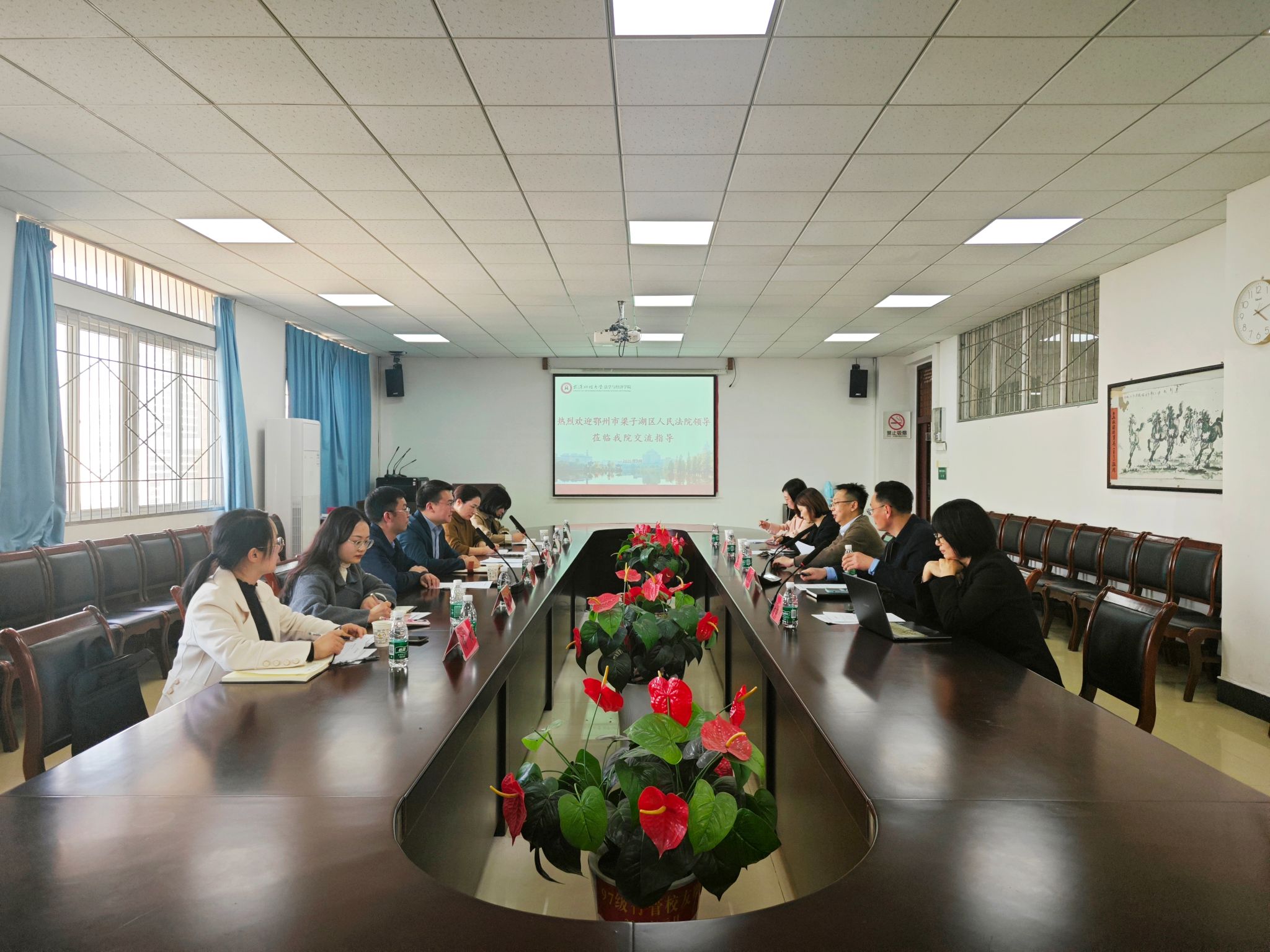 余喆介绍了梁子湖区人民法院发展情况,并对学院长期以来对梁子湖区人民法院的关心和支持表示感谢。他表示,梁子湖区法治建设正处于高质量发展的新时期,迫切需要高校的智力支持和人才支撑,希望与学院在人才培养、干部深造、决策咨询等方面开展全方位、深层次的合作,实现互利共赢、共同发展。
