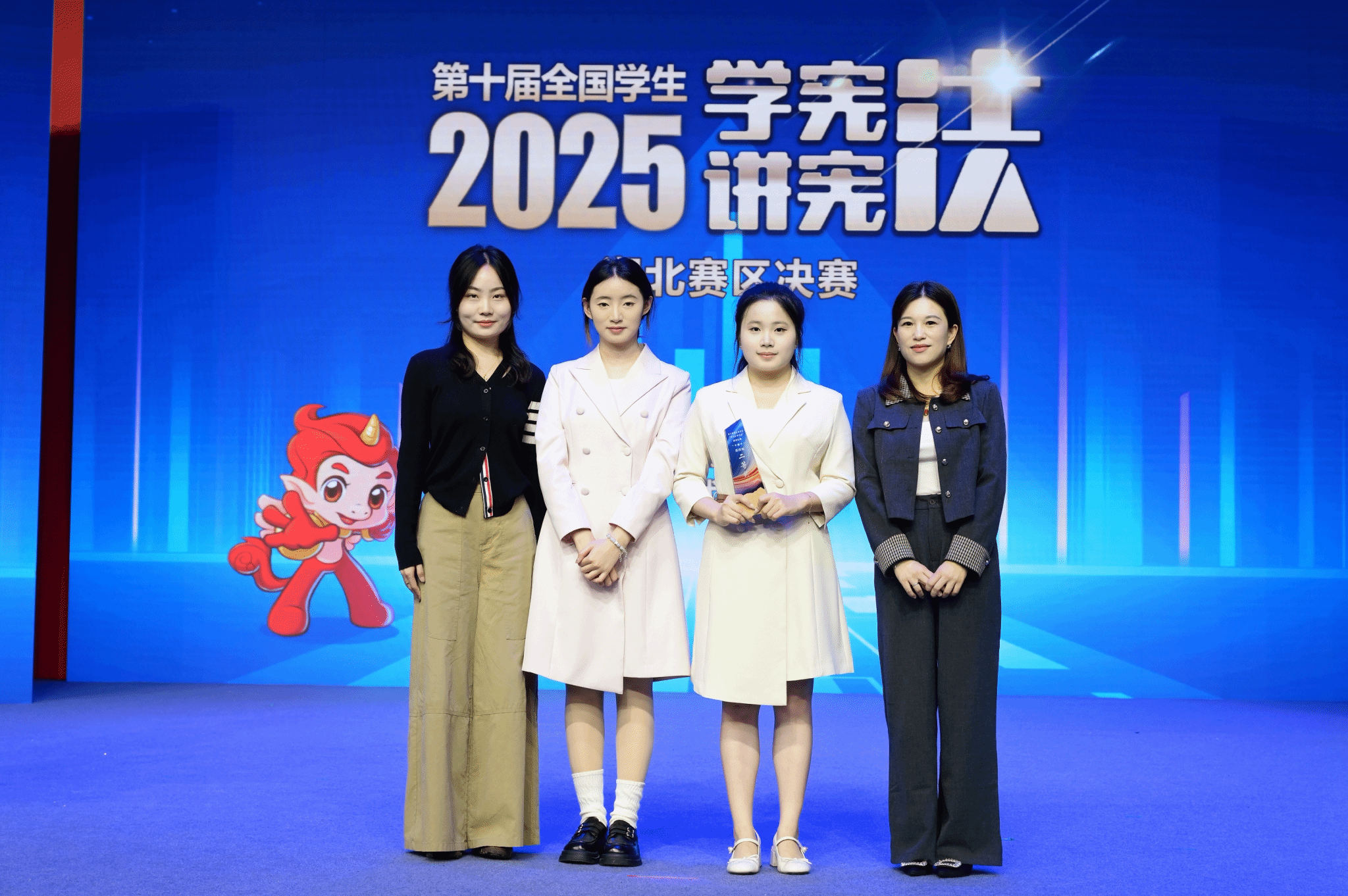 刘文喧同学围绕“拐卖妇女、儿童”议题展开论述,紧密结合宪法原则与精神,凭借扎实的专业素养与出色的表达能力荣获演讲比赛高校组二等奖;李嘉乐同学则依托其系统积累的法学理论功底,在法治素养竞赛中沉着应战,荣获三等奖。