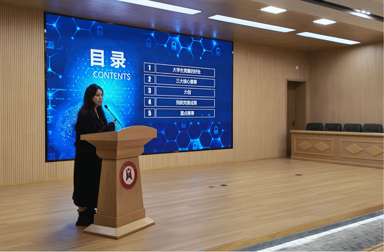 林淳宜围绕“以赛促学,启智未来”的主题,从“大学生竞赛的益处”切入,通过讲解成人导航