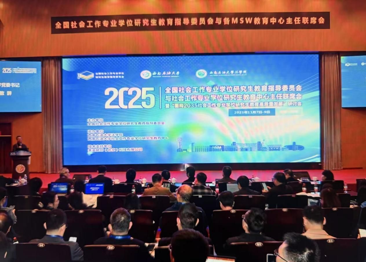 2025年11月8日上午,由全国社会工作专业学位研究生教育指导委员会主办,西南石油大学法学院、西南石油大学社会工作专业学位研究生教育中心承办的2025年全国社会工作专业学位研究生教育指导委员会与社会工作学位研究生教育中心主任联席会暨“面向2035社会工作专业学位研究生教育高质量发展”研讨会在西南石油大学图书馆学术报告厅拉开序幕。