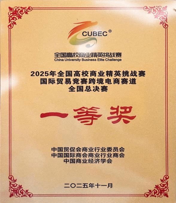 国际经济与贸易专业2023级本科生王梓涵、胡婧琪、胡贻菲、王曼组成的代表队,凭借扎实的专业功底与突出的创新实践能力,荣获“全国精英赛一等奖”、“最佳院校组织奖”,刷新了成人导航