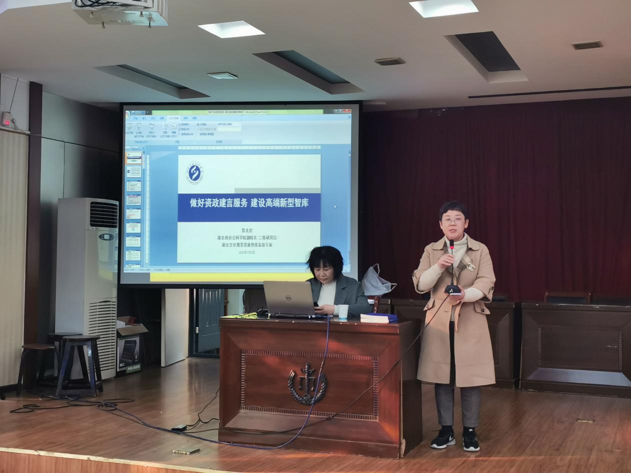 袁教授认为要着力打造一批具有重要决策影响力、社会影响力、国际影响力的新型智库,这是持续保持智库活力的根本遵循。袁教授以翔实数据作为支撑,向大家展示了湖北省社科院智库建设情况。最后,袁教授提出,迈向新时代新征程的中国特色新型智库,需坚持质量为先,成果为要,人才为本;要围绕湖北经济社会发展大局,从供给侧发力,以高质量研究报告资政辅政。袁教授指出,智库服务于湖北经济发展,需发挥科研专才,做到党和国家有需要,智库时刻有准备。