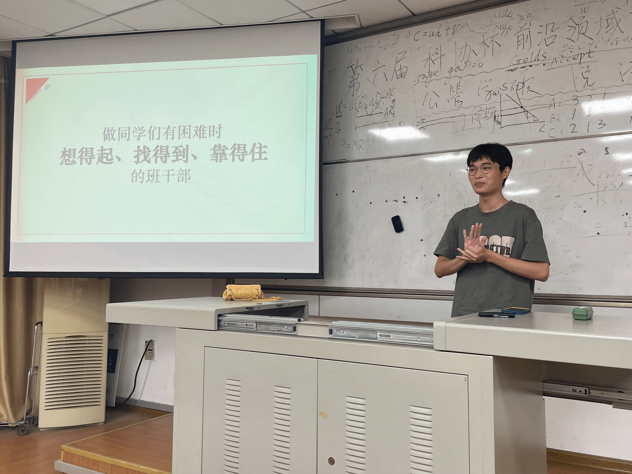 王雯静首先进行工作经验分享,以自身经历现身说法,向2022级各班班长分享班级组织管理经验与方法。