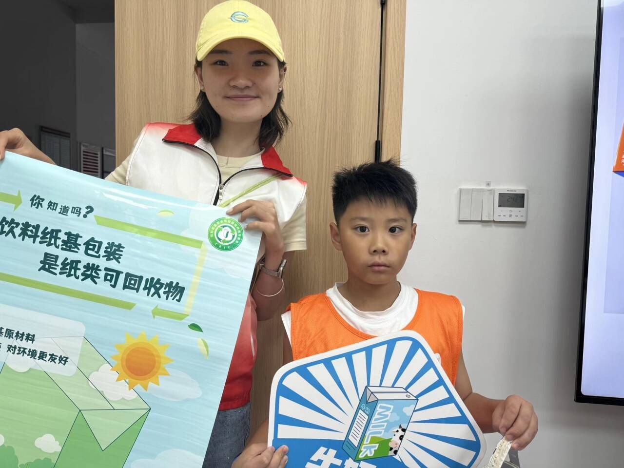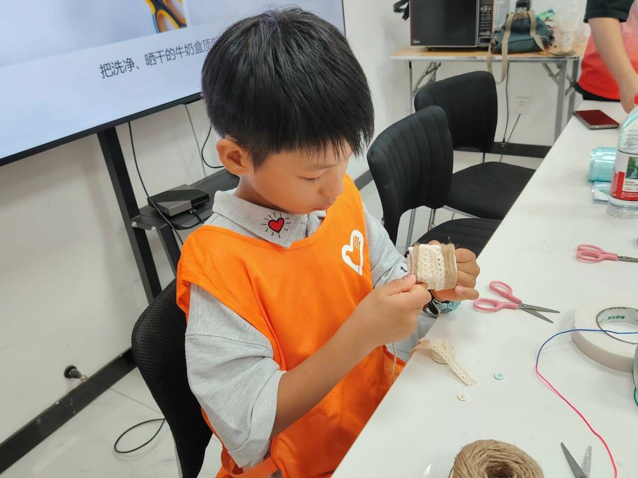 活动间隙,志愿者以趣味问答形式,向孩子们普及可回收物分类标准,讲解废旧物品回收利用的价值,引导孩子们树立资源再利用的意识。法学2402王佳瑜说:“参与这次的志愿活动,我收获良多。亲手指导小朋友将废旧牛奶盒变成创意手作,看着他们专注的神情和完成作品后的笑脸,我满心欢喜。活动中,我们还传递了环保理念,这不仅是一次实践,更是一堂生动的责任教育课。”