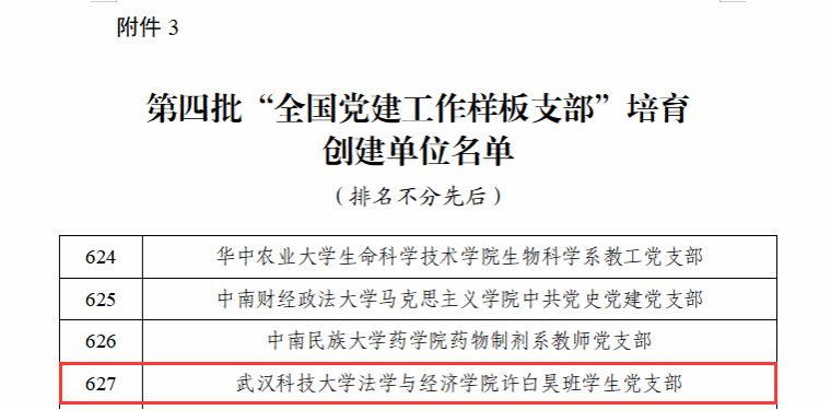 喜报!“全国党建工作样板支部”,法经学院+1!