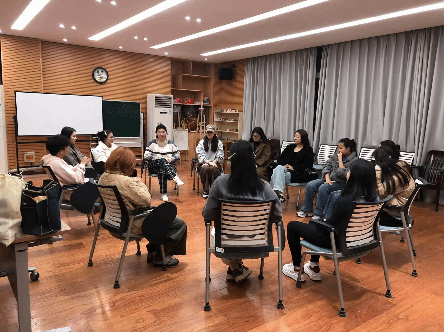 社会工作专业音乐治疗方向硕士研究生郑炜慧、周晓颖、邓倩倩应邀参加给学员做音乐团体治疗实训工作。